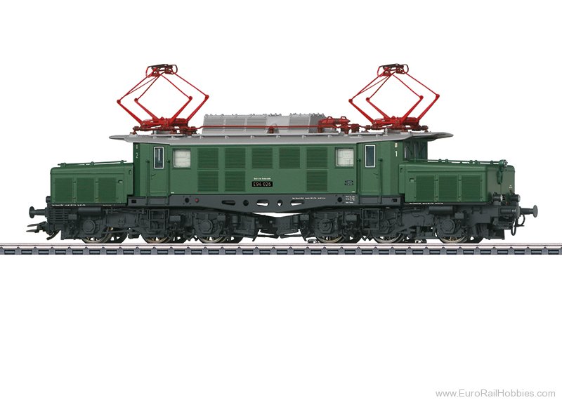 Prototype: German Federal Railroad (DB) class E 94 heavy freight train electric locomotive. Chrome-oxide green basic paint scheme with a black frame and running gear. With a roof extension and six sandboxes on each side. Loco road number E 94 026. The loco looks as it did around 1964.