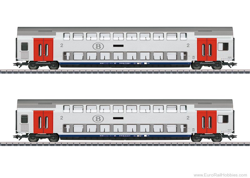 Prototype: Two SNCB type M6 bi-level cars, 2nd class. Light gray basic paint scheme. The cars look as they did starting in 2023.