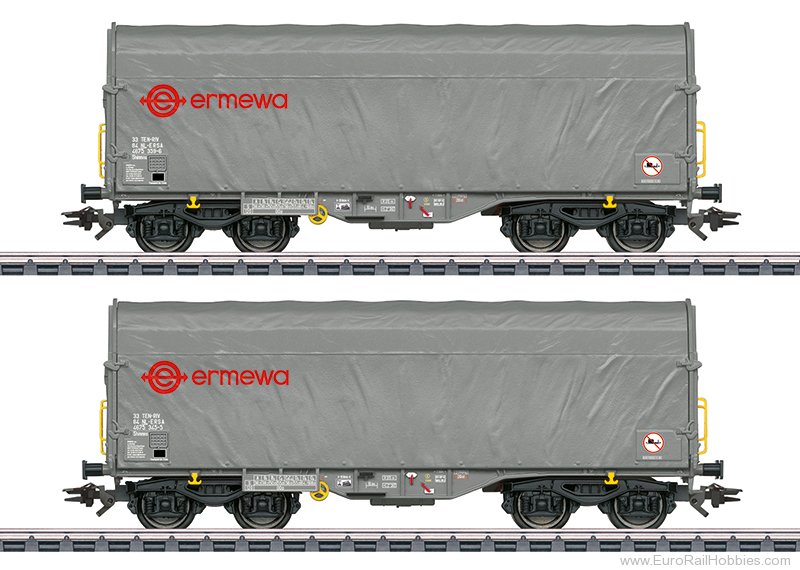 Prototype: Two type Shimmns short, four-axle, sliding tarp cars. Privately owned car painted and lettered for the firm Ermewa Sa, registered in the Netherlands. The cars look as they did around 2010.
