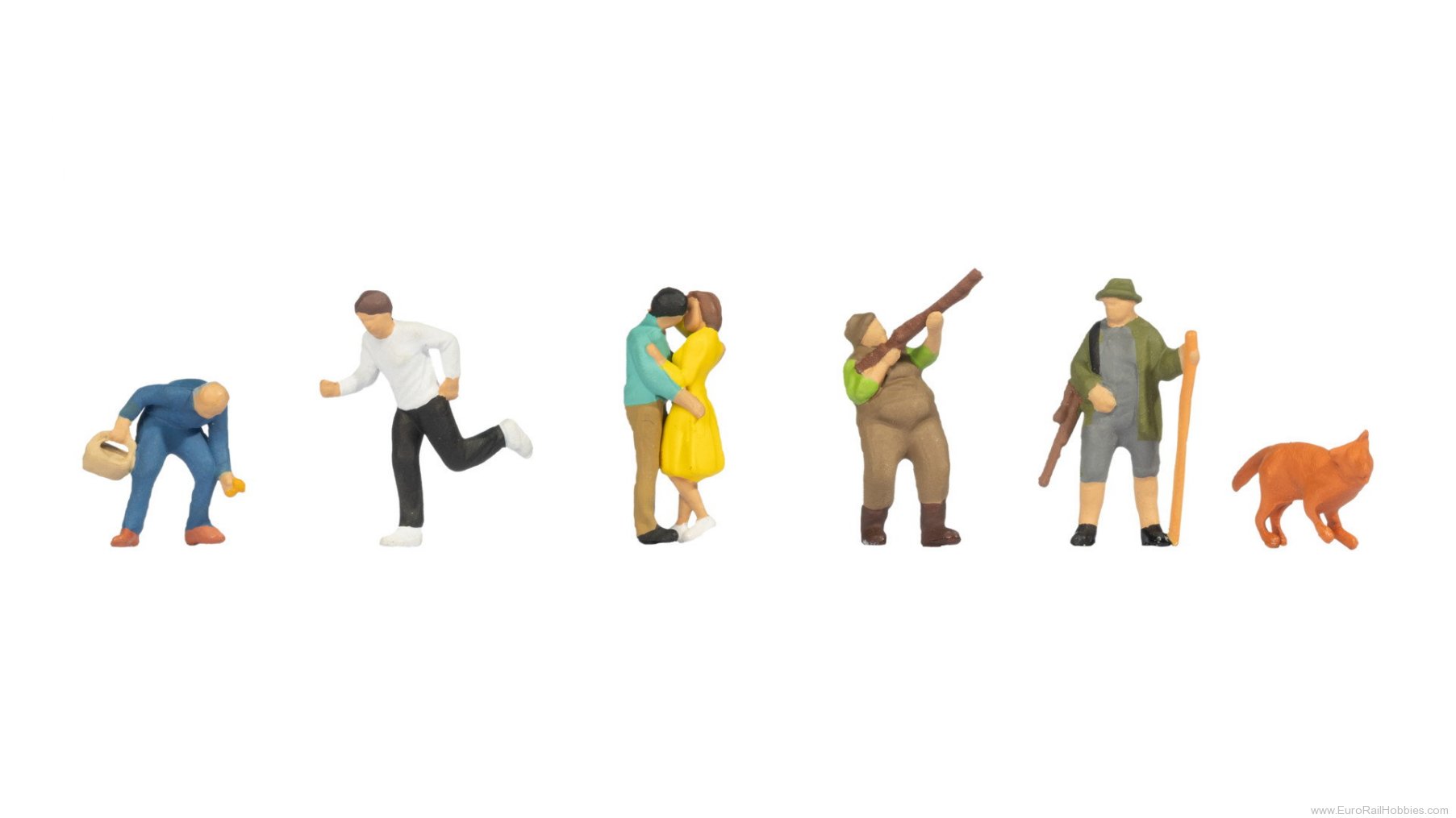 The figures offer a wide range of applications. On a model railway, they enhance wooded sections along the tracks, remote stops or transitions between village and countryside. In model building, they are ideal for forest landscapes, rural life scenes or nature dioramas. They are also well suited for decoration and macro photography, providing calm, atmospheric motifs with depth. Combined with animals or other NOCH figure worlds, they help create a miniature world where nature and everyday life come together authentically.