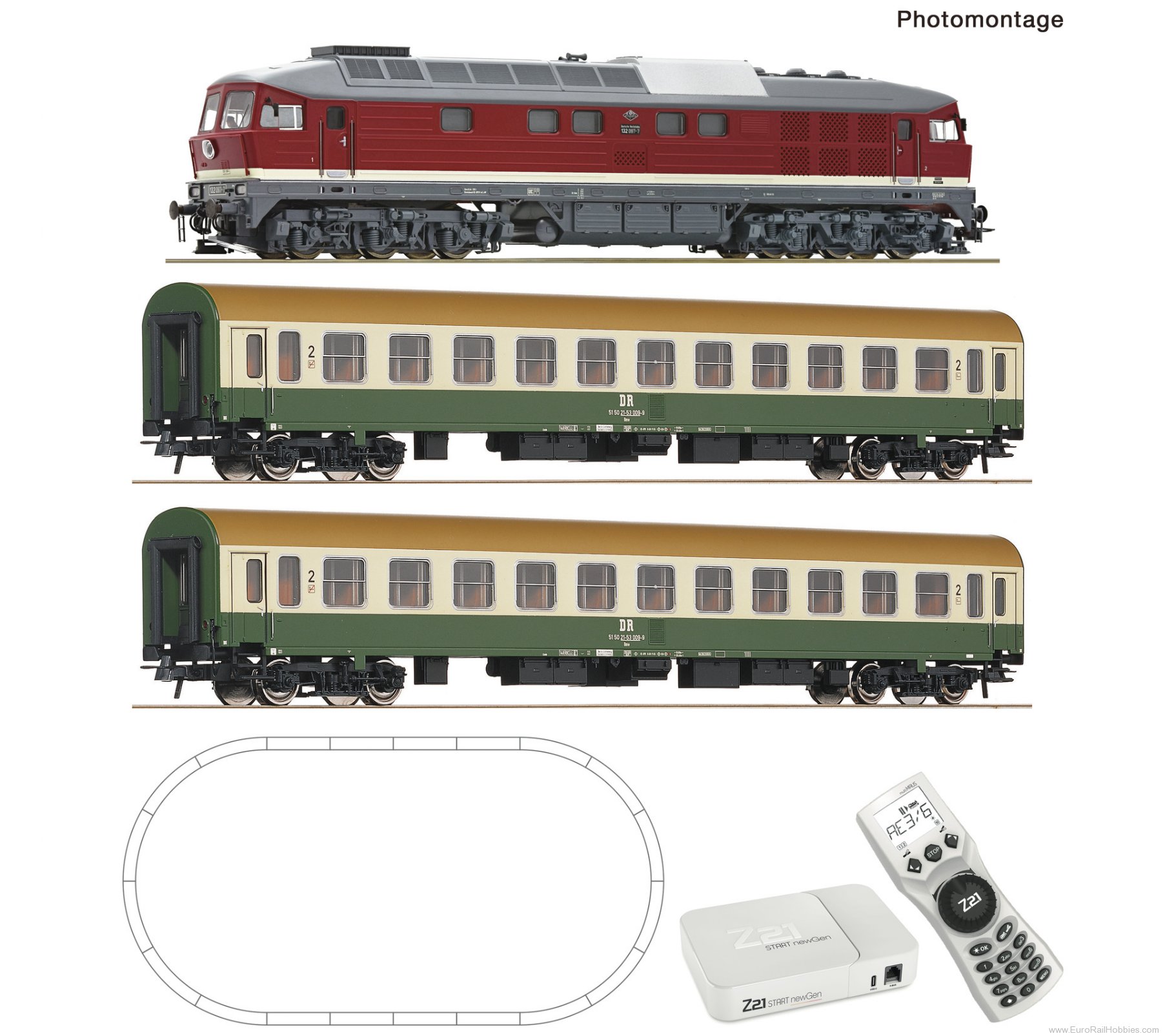 Z21 START newGen digital set: Diesel locomotive class 132 with express train of the railway company of the German Democratic Republic (DR).