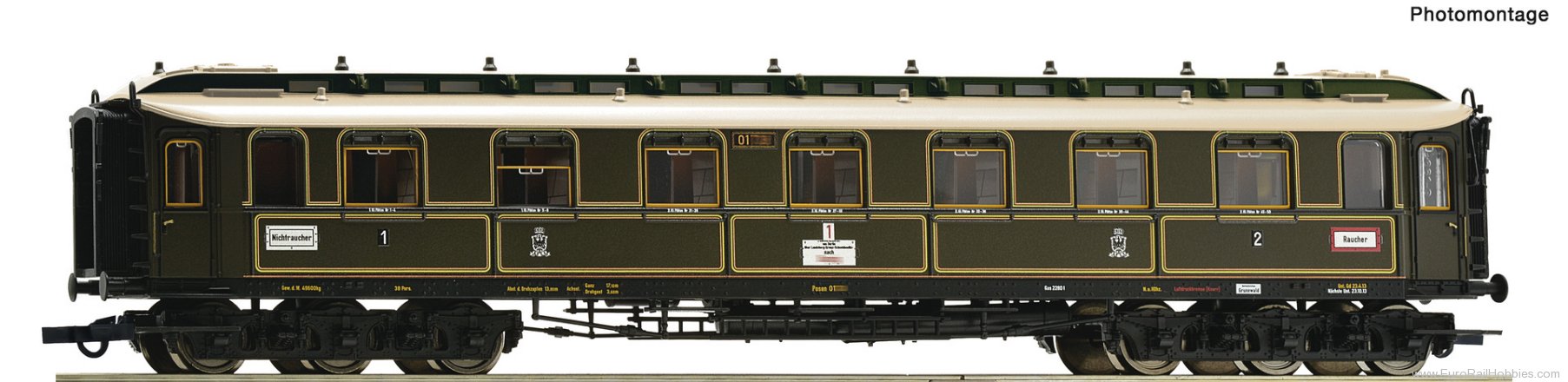 1st/2nd class 6-axle express train coach, type AB 6u (Pr06), of the Royal Prussian Railway Administration.