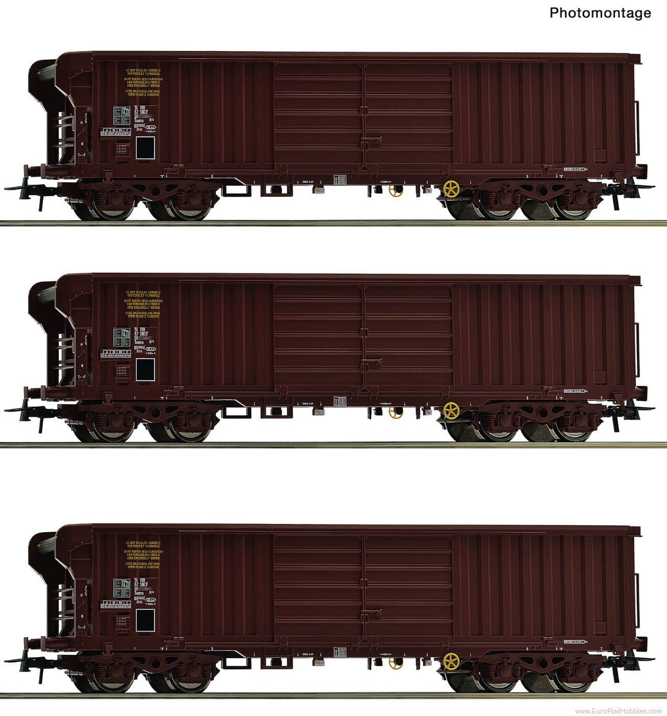 Wagon set with three roll-roof wagons, type Taems, of the French State Railways.