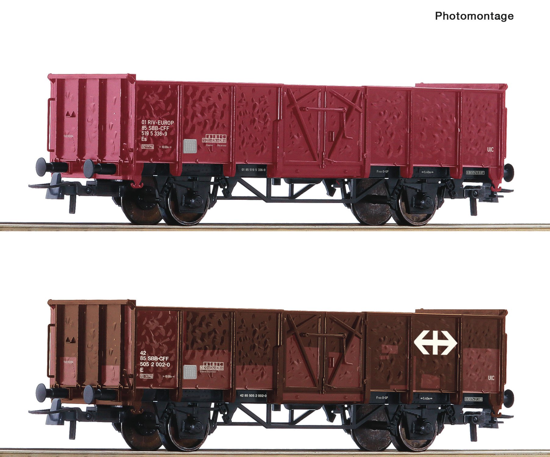 Set of two 2-axle open goods wagons, type L7, of the Swiss Federal Railways.