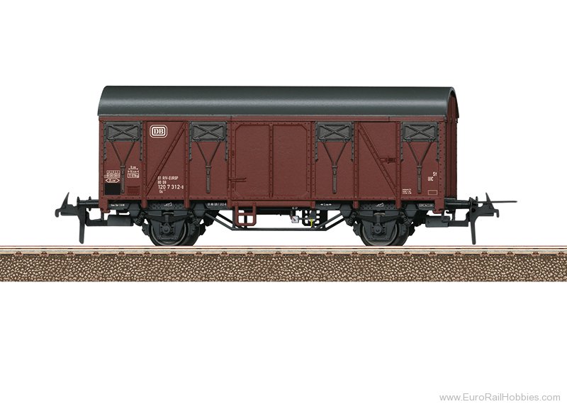 Prototype: German Federal Railroad (DB) type Gs 210 two-axle boxcar. Reddish brown basic paint scheme. The car looks as it did starting in 1980.