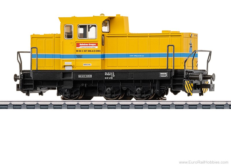 Prototype: German Railroad Track Laying, Inc. (DBG) fictitious class 367 diesel switch engine.after the private and industrial railroads were largely satisfied with the total of 55 units of the class DHG 700 acquired from Henschel in Kassel between 1973 and 1985 and are still pleased with them after many decades of operation, the German Railroad Track Laying, Inc. also acquired them because it was suffering from an acute shortage of motive power in 2005/2006. The generally rugged units of the class DHG 700 had not been built for 20 years. The subsidiary DBG belonging to the German Rail, Inc. was in luck when just at that moment an industrial railroad halted operation, and six units of this type became available. The DBG made use of the opportunity and acquired all six units, giving them a new field of activity in so-called "az-Dienst" (Work Train Service). First, the six new units had to be incorporated into the railroad's numbering scheme. Since there were no locomotives of this type on the roster of the DB aG or on the subsidiary, the new arrivals were classified as the class 367 and were given the road numbers 367 001-5 to 367 006-4.