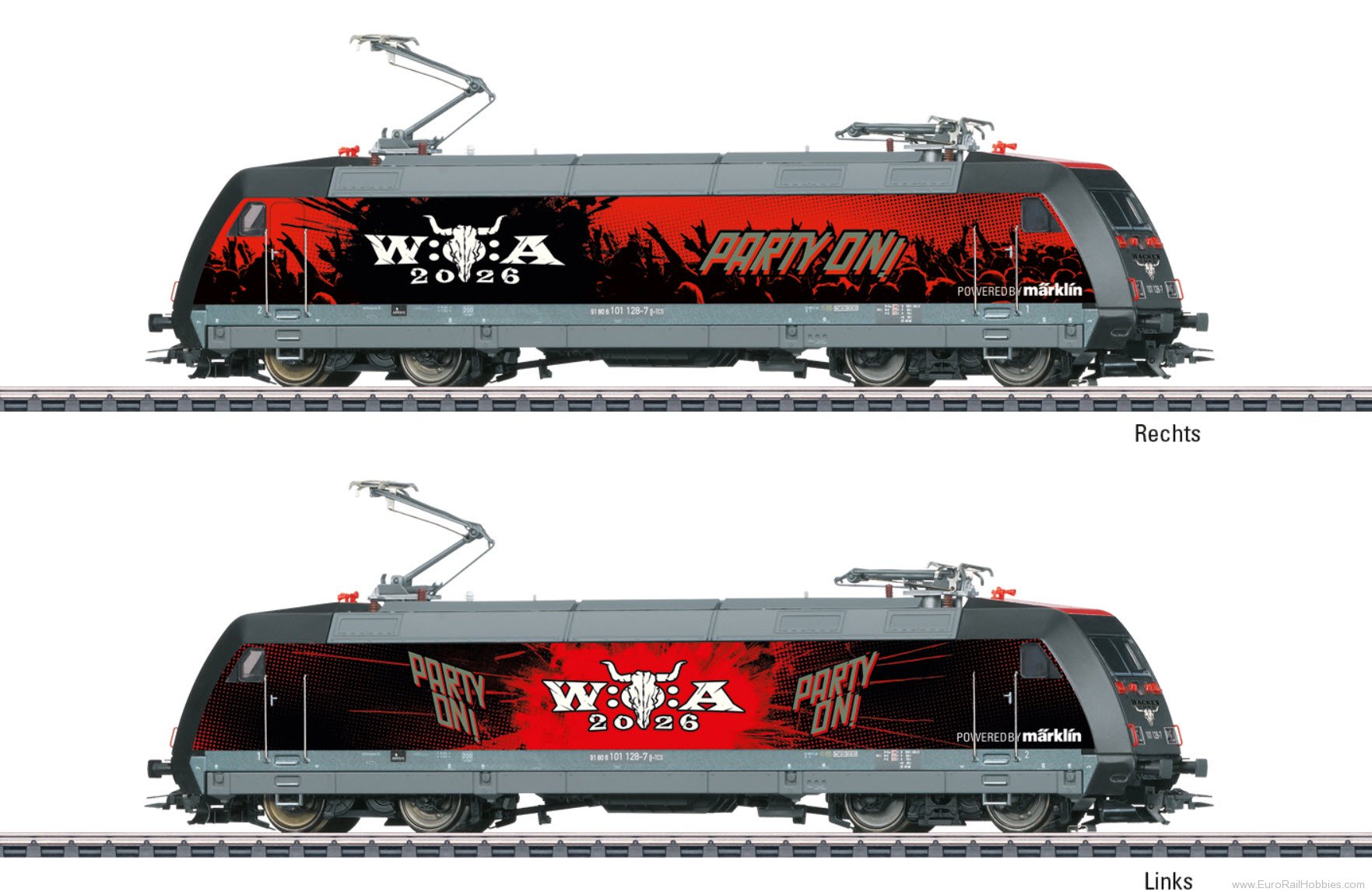 Prototype: Class 101 express locomotive with a special design for the Wacken Open Air (W:O:A®) music festival. The loco looks as it did in 2026.