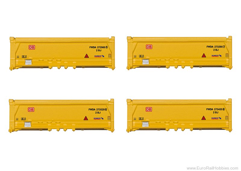 Four hoppers for waste material, registered with German Railroad (DB AG).