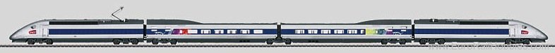 Model: The train is a 4-part set. It has 1 powered end car (TK1) with a motor and 1 powered end car (TK2) without a motor. The train has an mfx digital decoder and extensive sound functions. It has controlled, high-efficiency propulsion in powered end car 1, centrally mounted. 4 axles powered through cardan shafts. Traction tires. The train has factory-installed interior lighting. The triple headlights and dual red marker lights change over with the direction of travel. They and the interior lighting will work in conventional operation and can be controlled digitally. The third headlight for the French headlight code can be turned off separately in digital operation. The headlights and interior lighting are maintenance-free, warm white LEDs and the marker lights are maintenance-free red LEDs. The train has separately applied metal grab irons. It also has inset windshield wipers. The engineer''s cabs in the powered end cars have interior details. A powered end car and a transition car are permanently coupled together in pairs and have special close couplings with a guide mechanism. There is an additional guide mechanism in the Jakobs truck. The end cars have a pickup shoe changeover feature so that the pickup shoe at the front of the train is the one picking up power. The interior lighting is powered through a continuous electrical connection through the entire train. Each powered end car has 2 different design single-arm pantographs, one with a wiper for the DB catenary and one with a wiper for the SNCF catenary. The pantographs work mechanically but are not wired to take power. The train is a scale reproduction. The minimum radius for operation is therefore 360 mm / 14-3/16", when there is sufficient clearance on both sides. Length of the 4-part set 101 cm / 39-3/4".